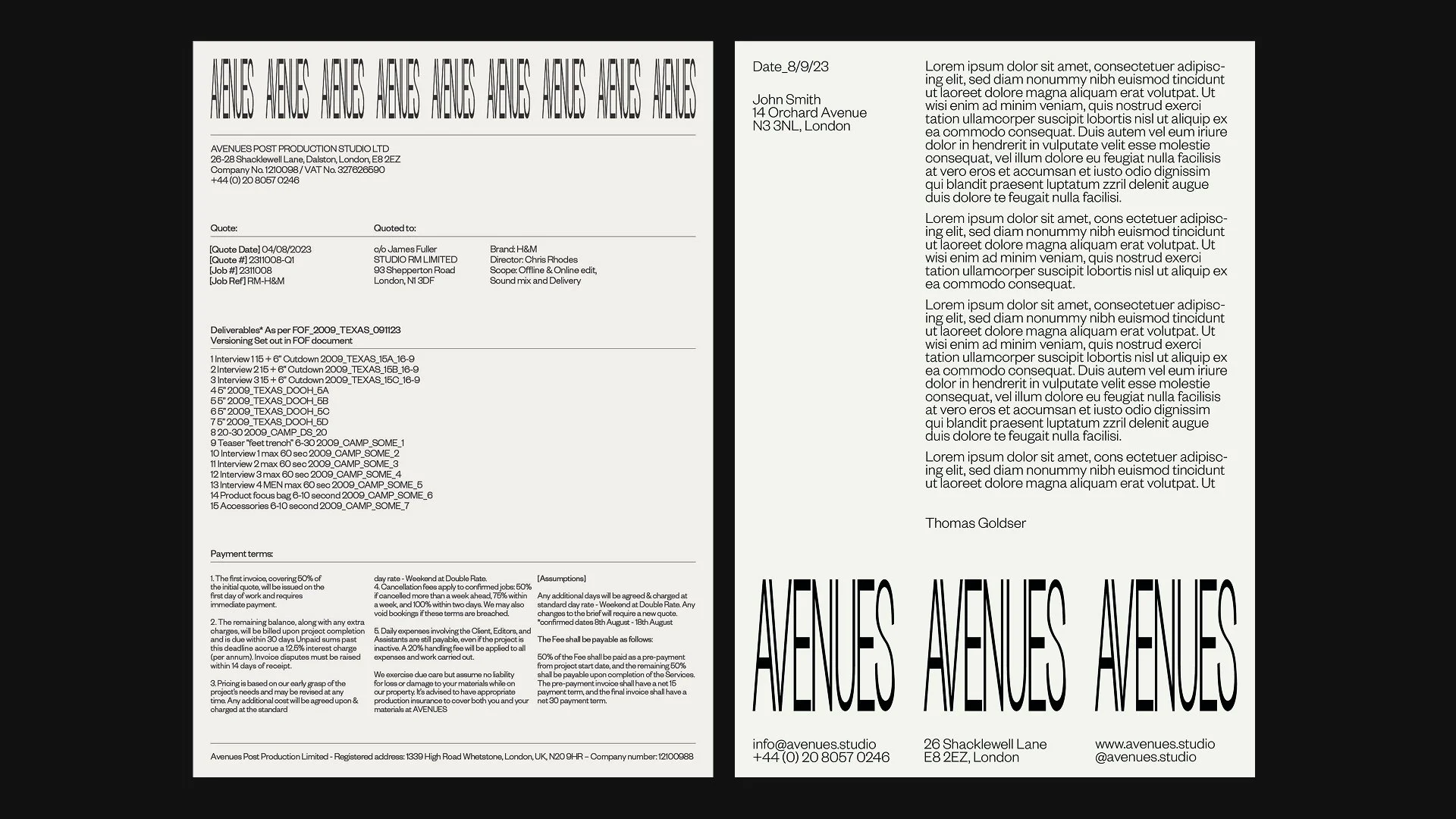 We revisited and refreshed an identity we originally built for Avenues several years earlier, evolving it for the next phase of the business. We developed a visual identity and digital experience designed to balance function and storytelling, grounded in the craft of editing itself. The website works two ways: a public-facing portfolio, and an internal tool for collating and sharing work. The identity stays simple at its core so the work takes centre stage, while the digital experience adds considered moments of rhythm and movement, echoing the editorial process.