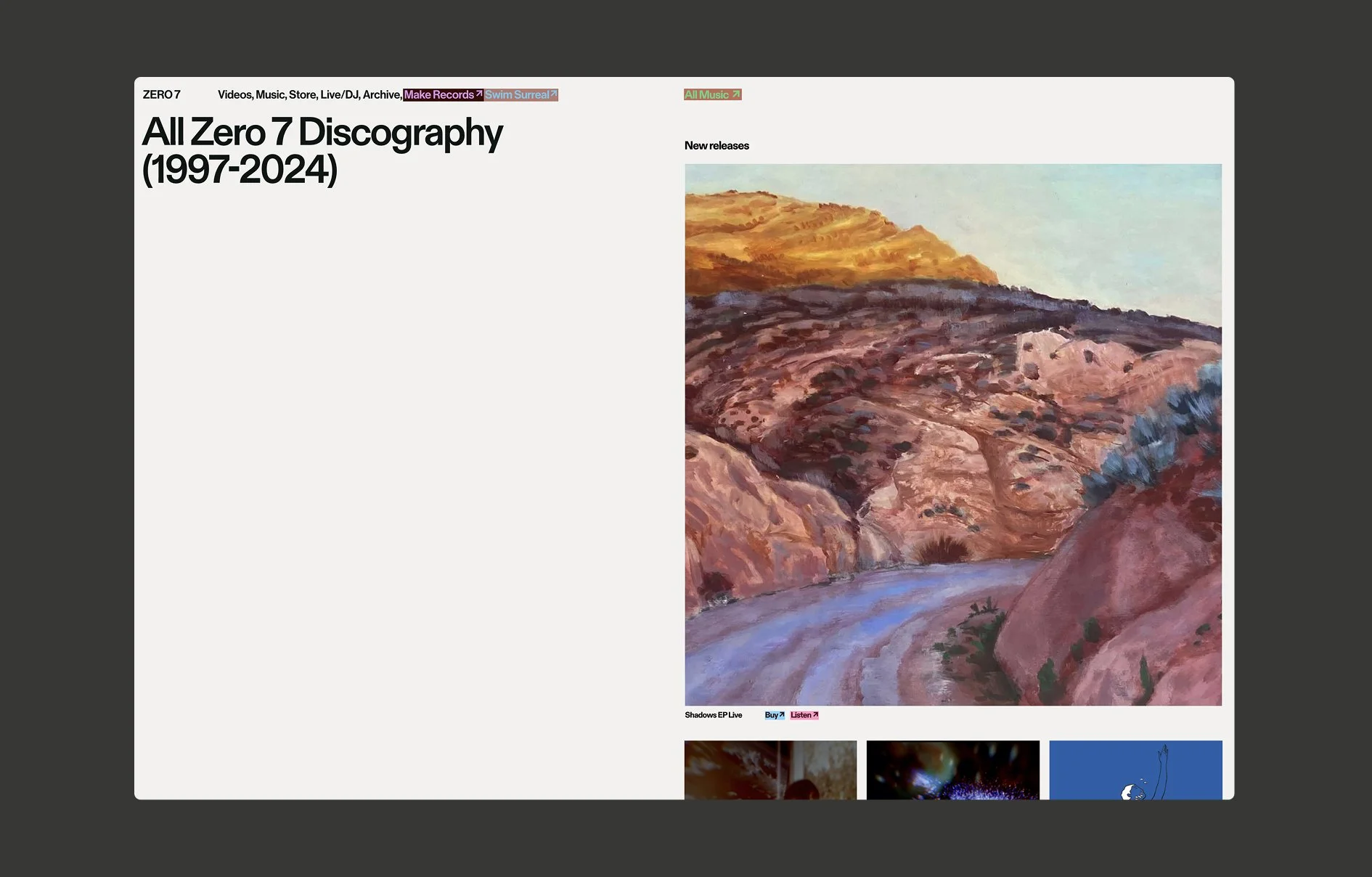 We designed and built a new digital home that prioritises access over promotion, making their body of work easy to explore, enjoyable to browse, and coherent as a whole. Working closely with the duo, we structured the site with simplicity in mind; clear pathways into releases, collaborations, and ephemera, supported by an editorial rhythm that encourages discovery.